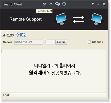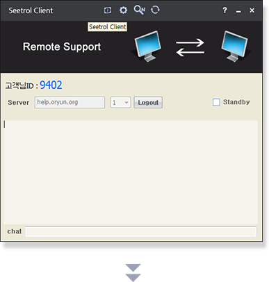 2. 아래와 같이 "Seetrol Client"프로그램이 실행되면 상담원에게 고객님 아이디를 말해줍니다.